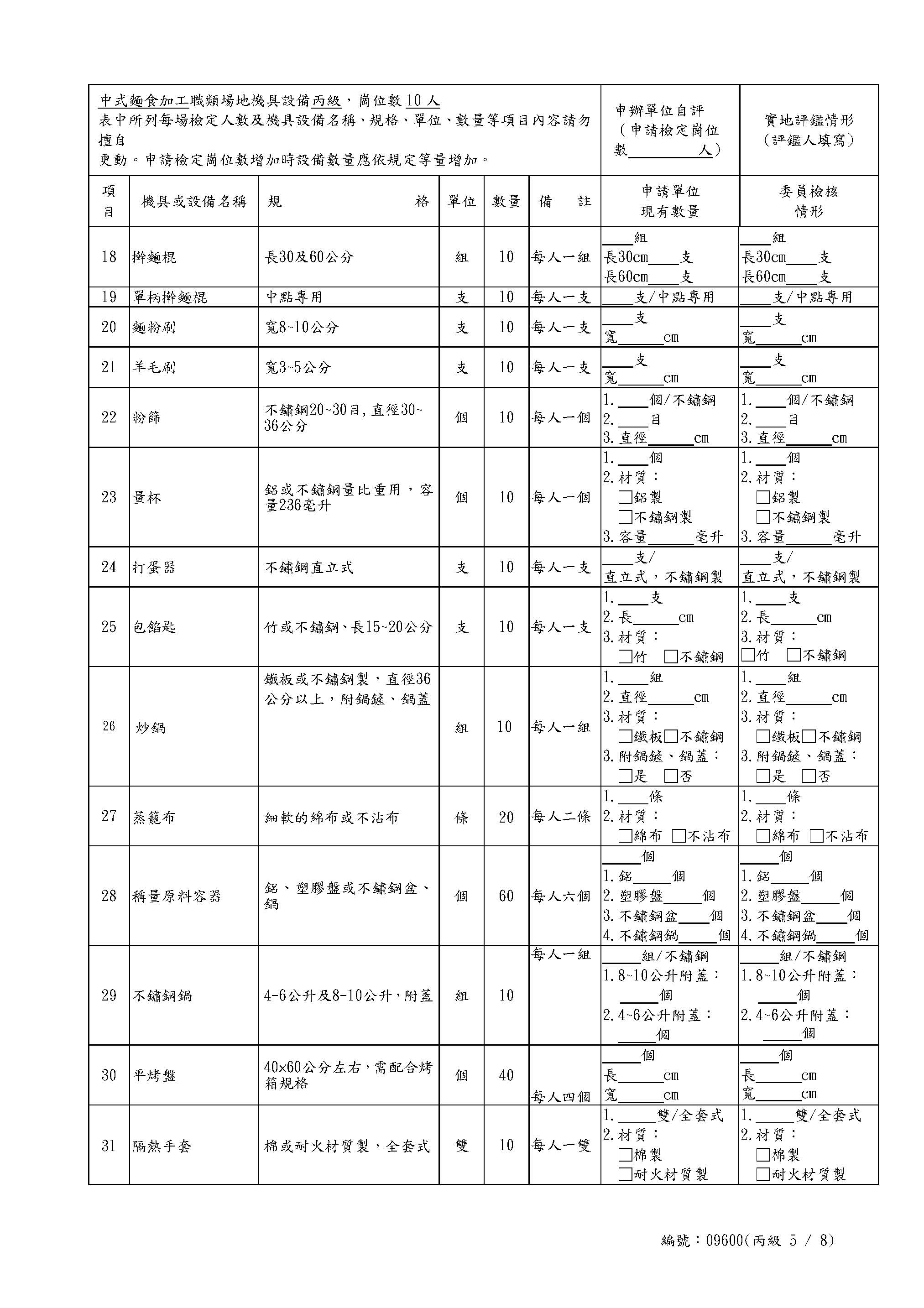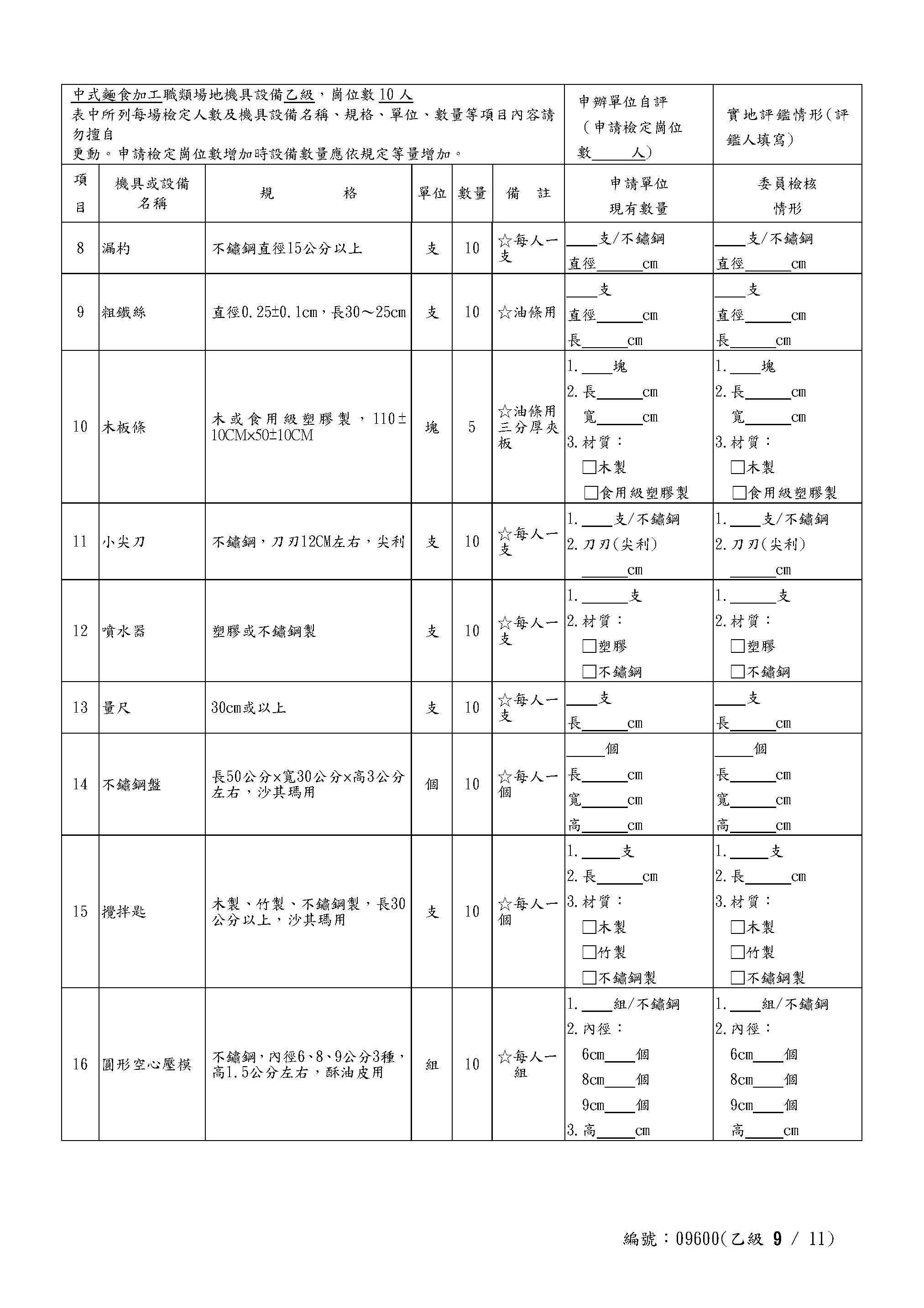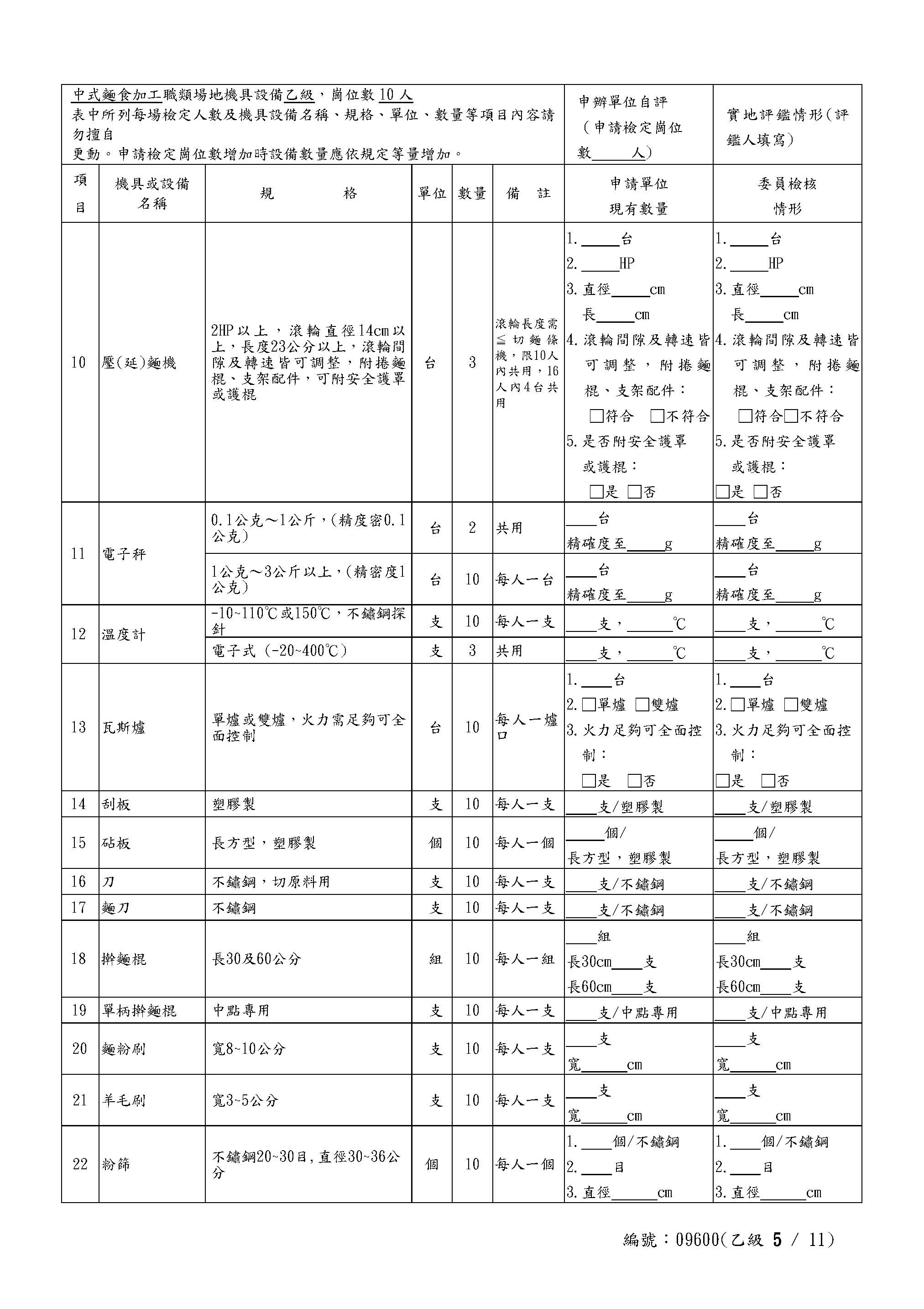 Self-Assessment Form for Chinese Noodles Class C
