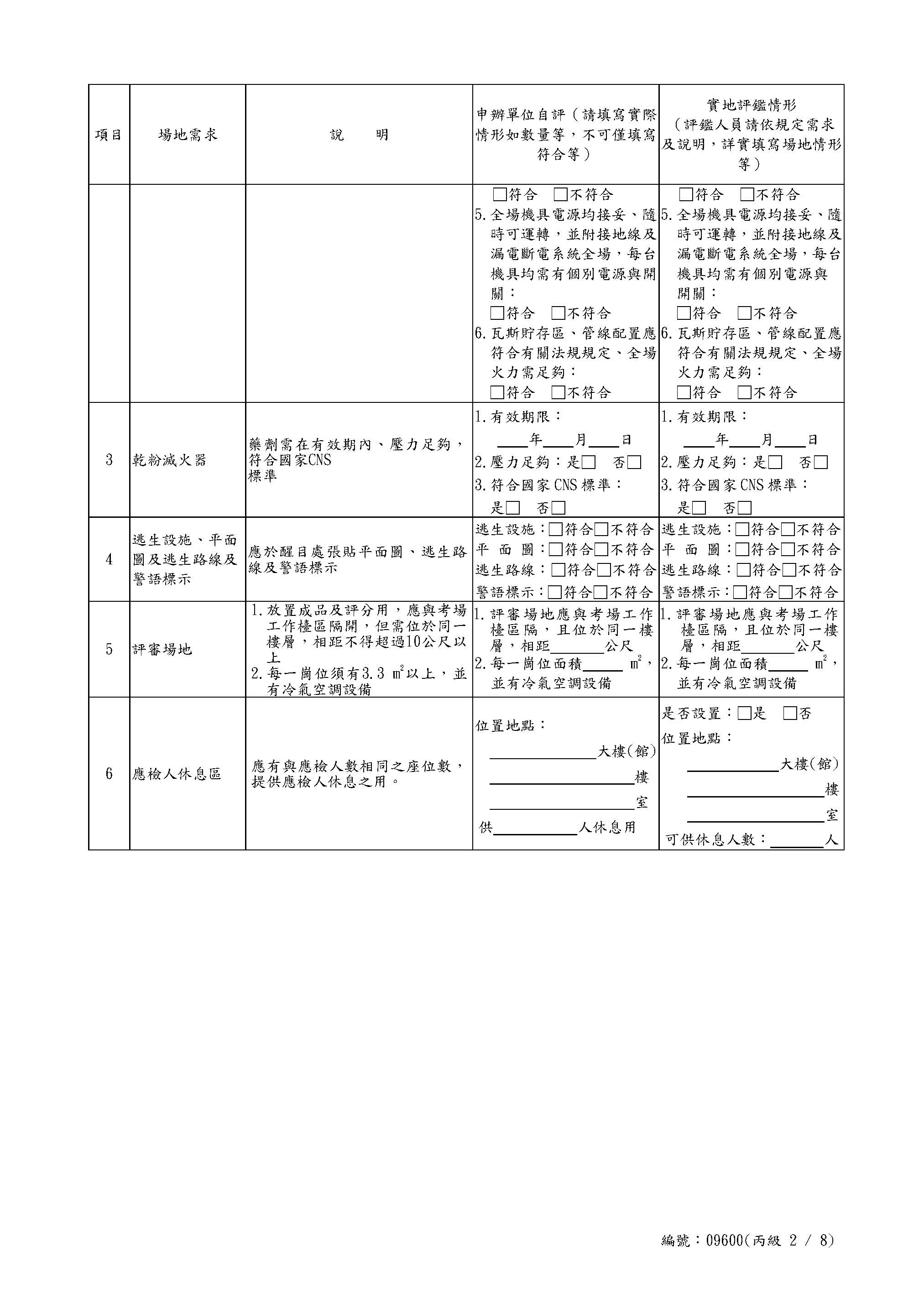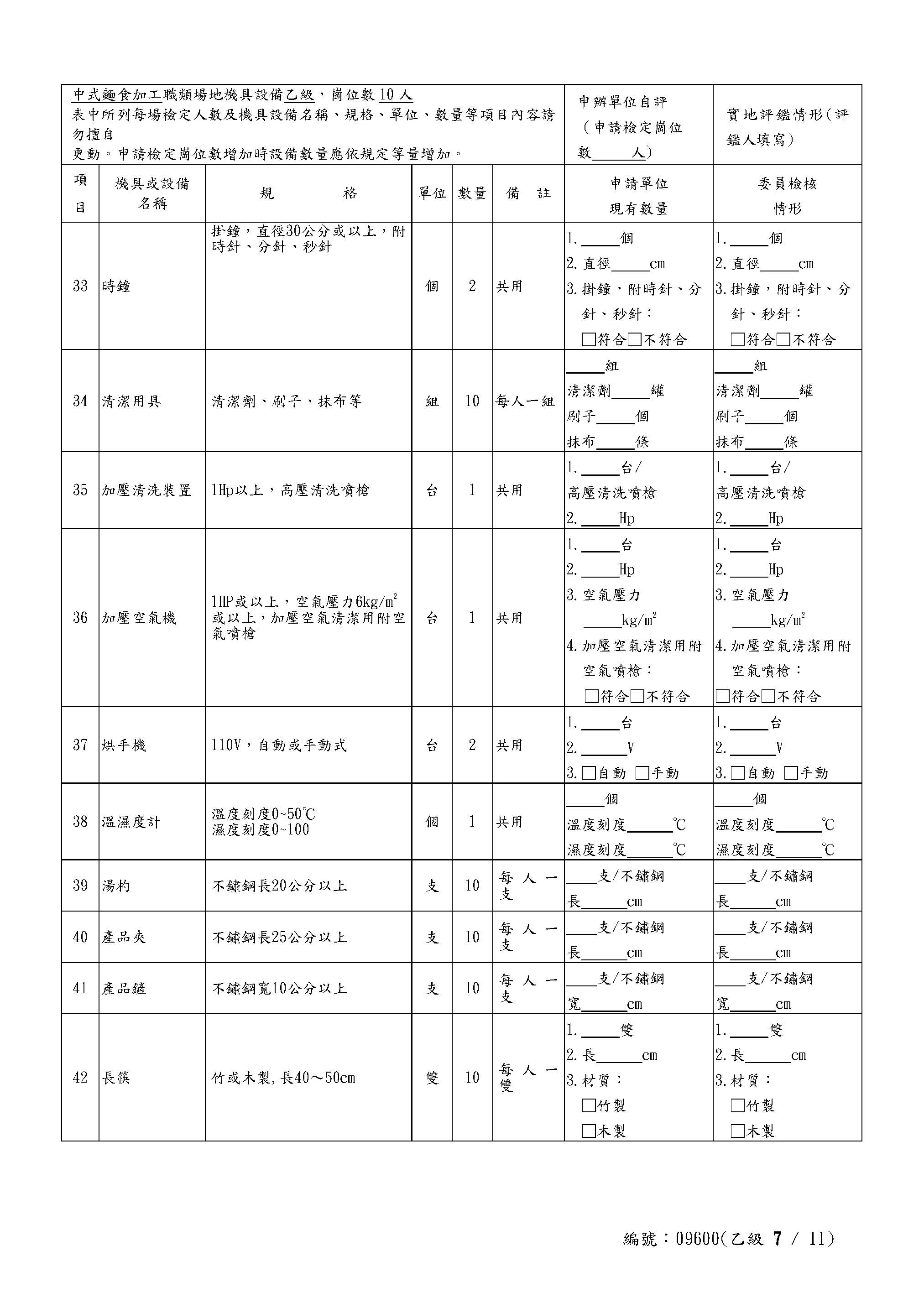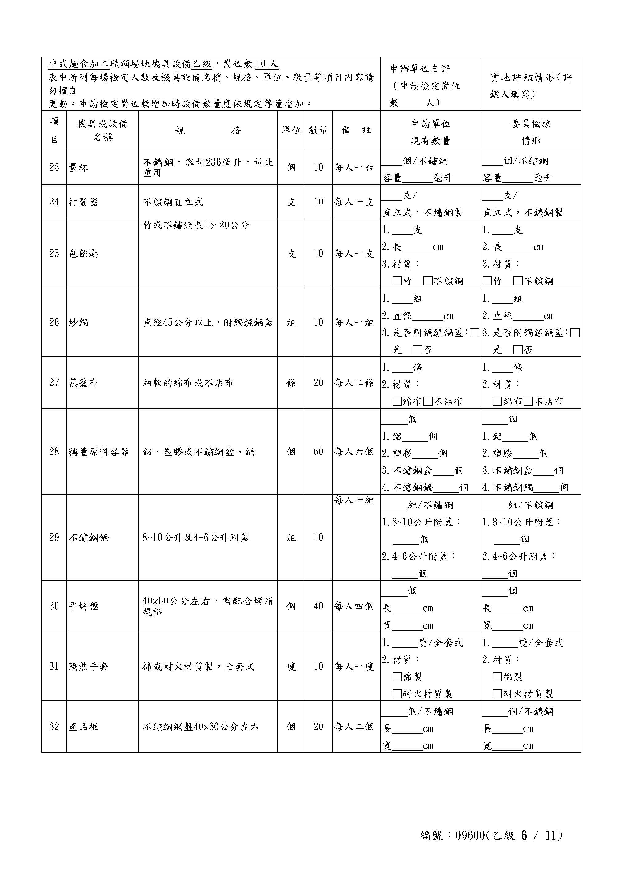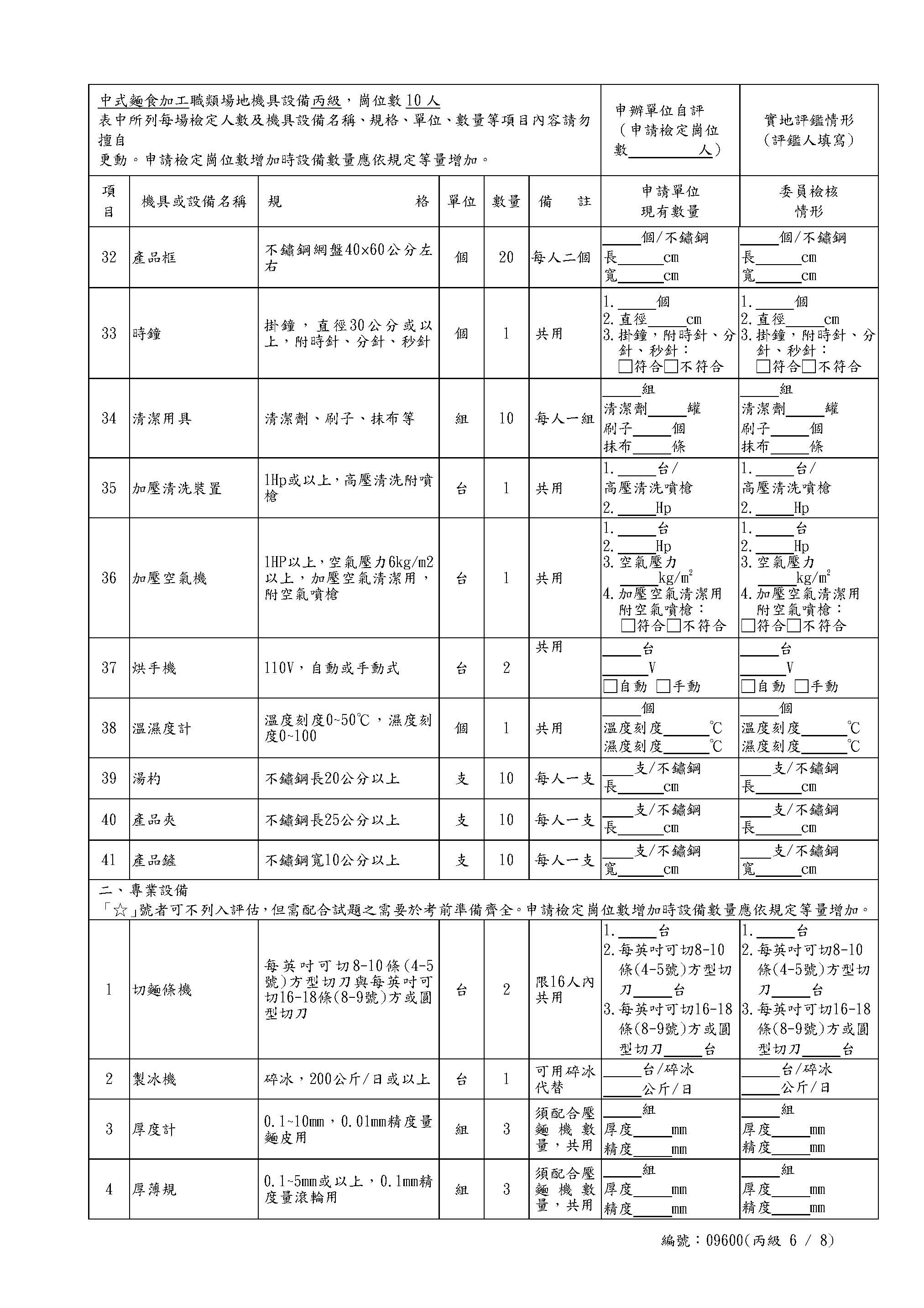 Self-Assessment Form for Chinese Noodles Class C