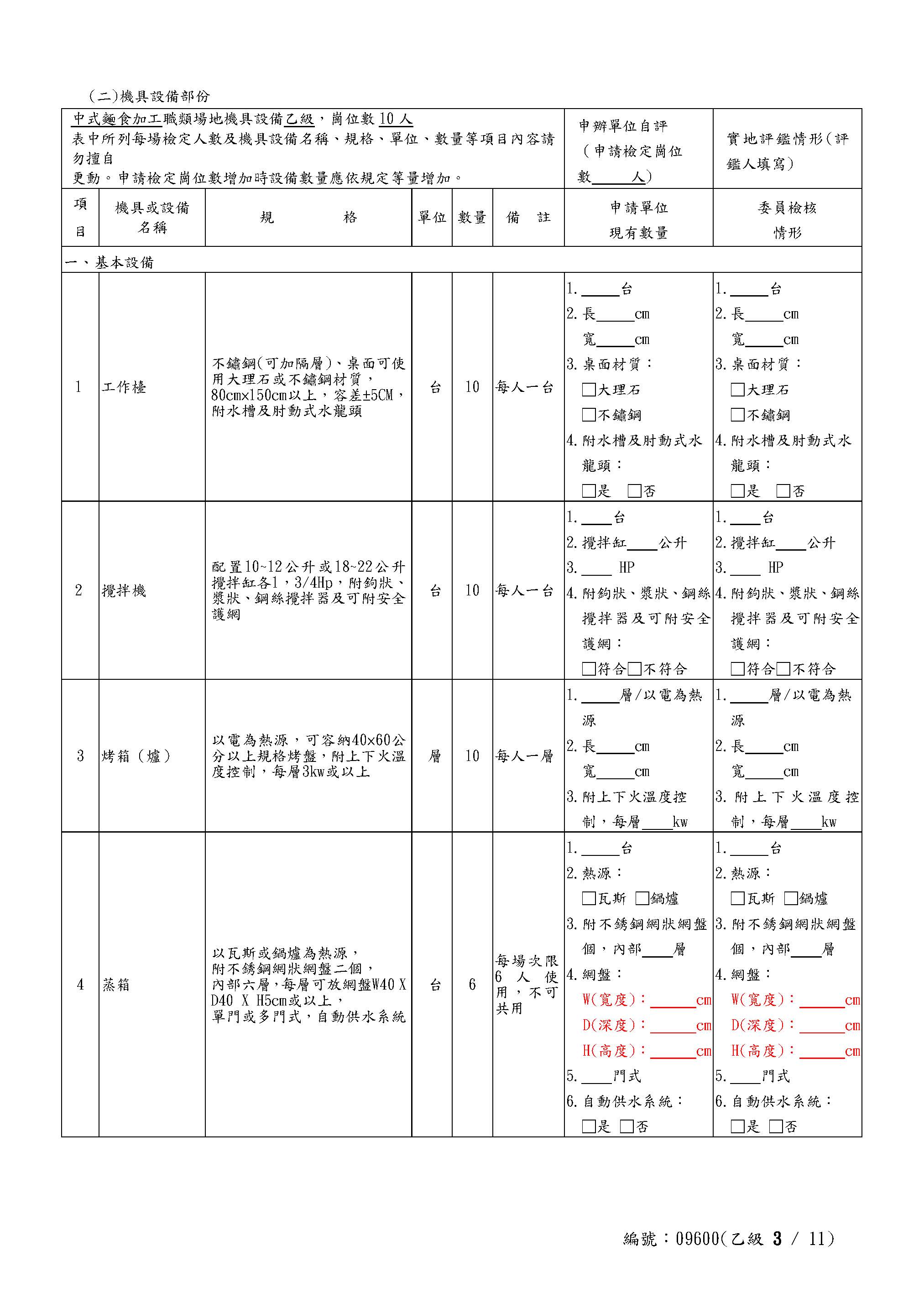 Self-Assessment Form for Chinese Noodles Class B