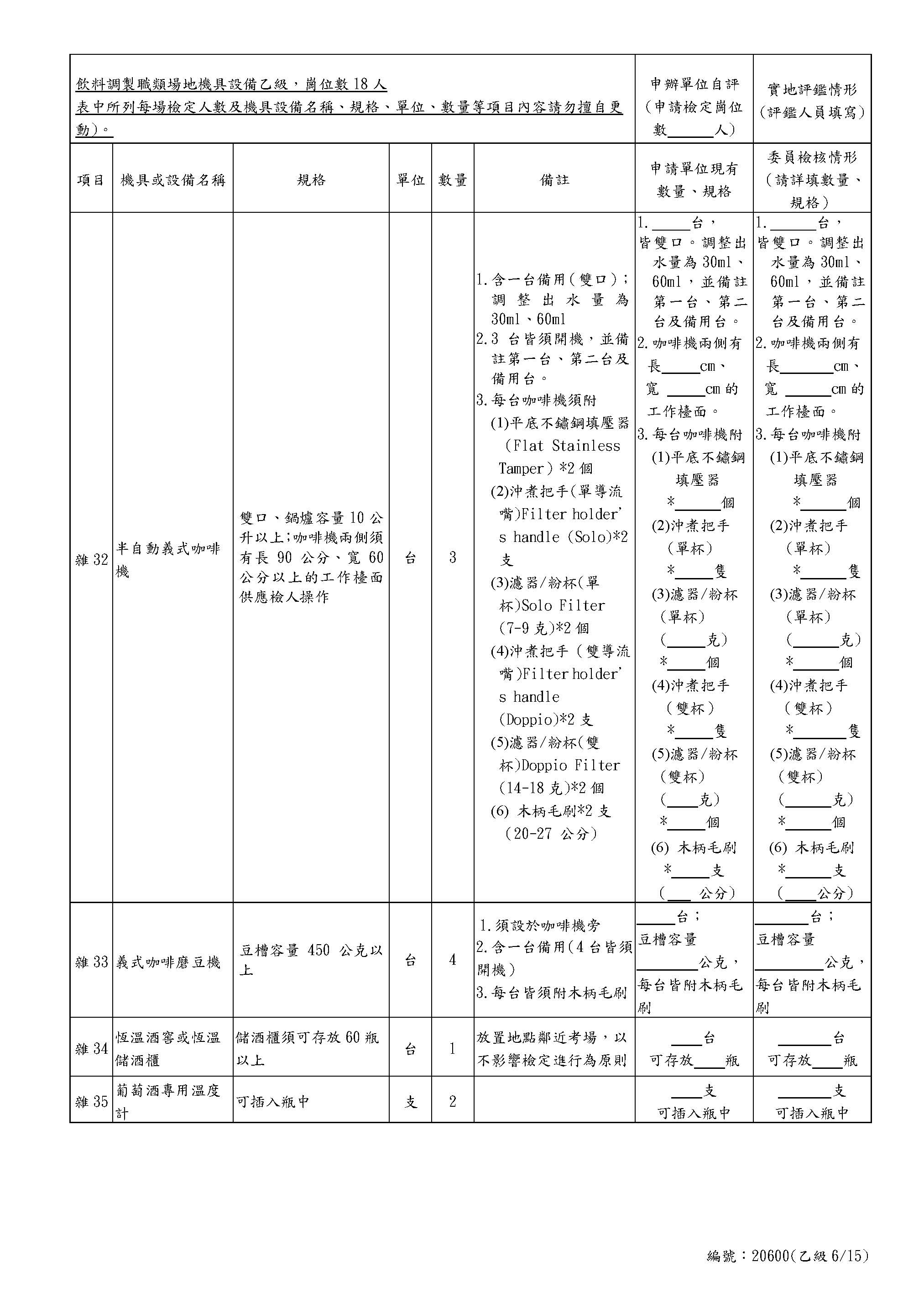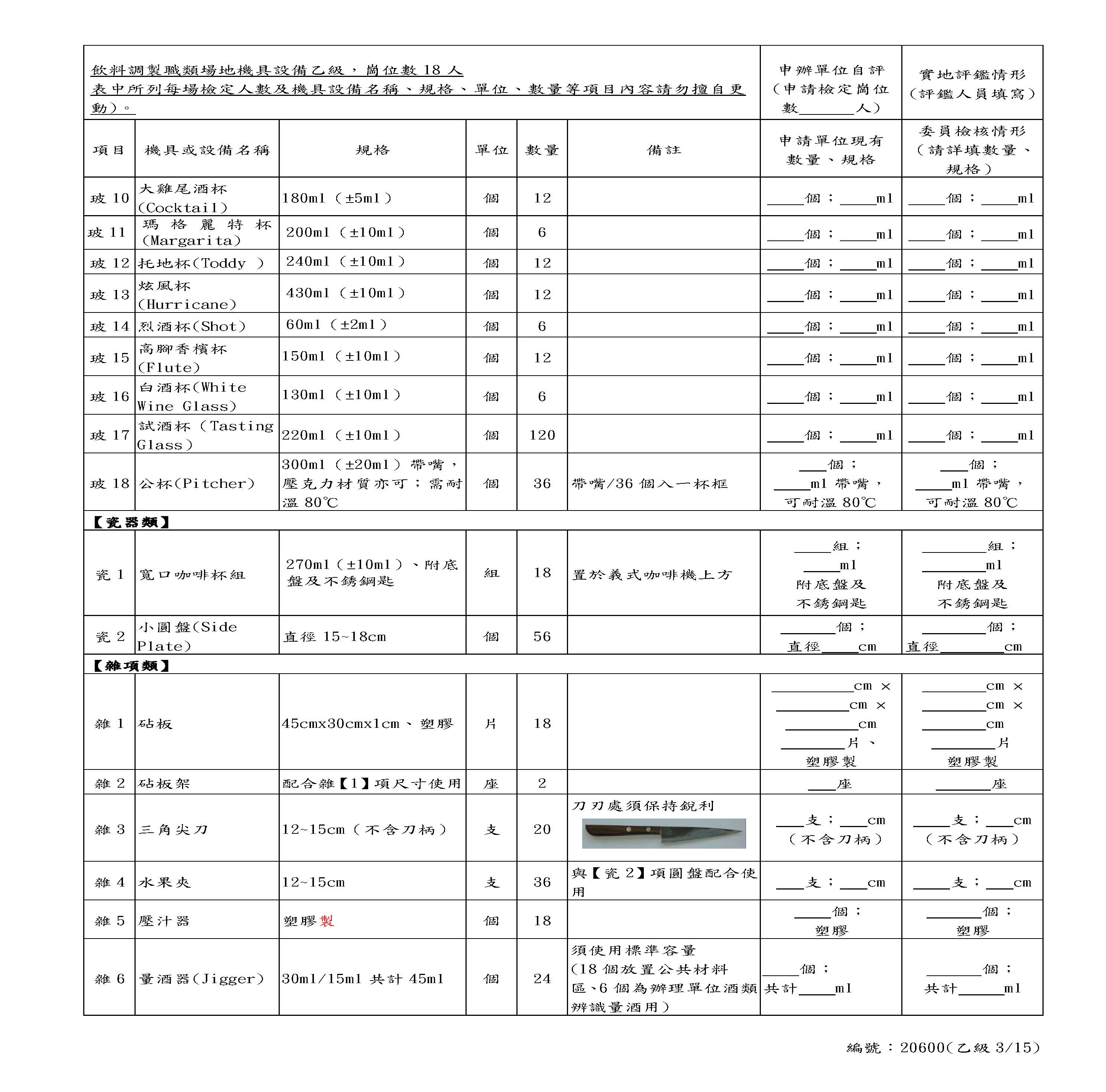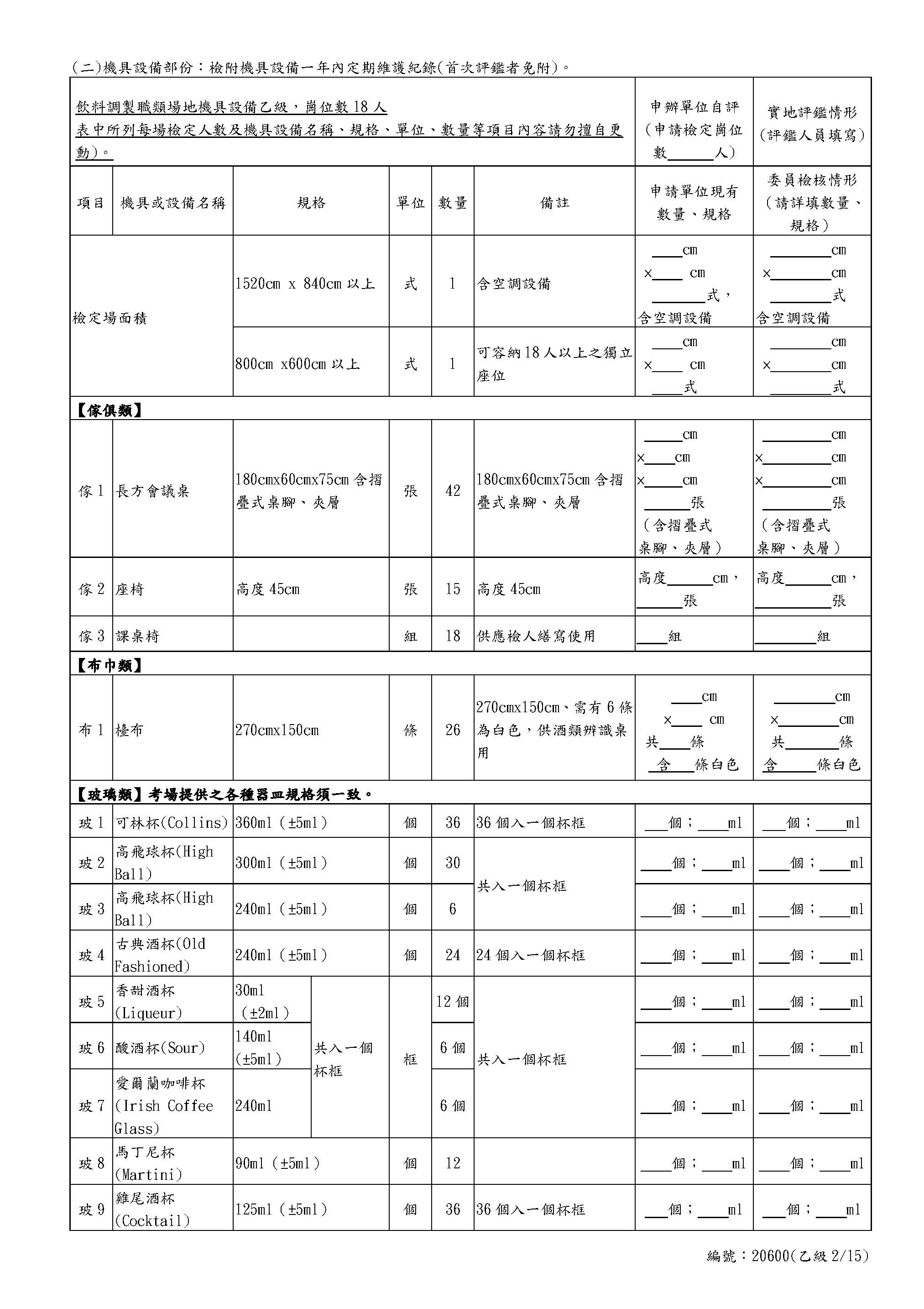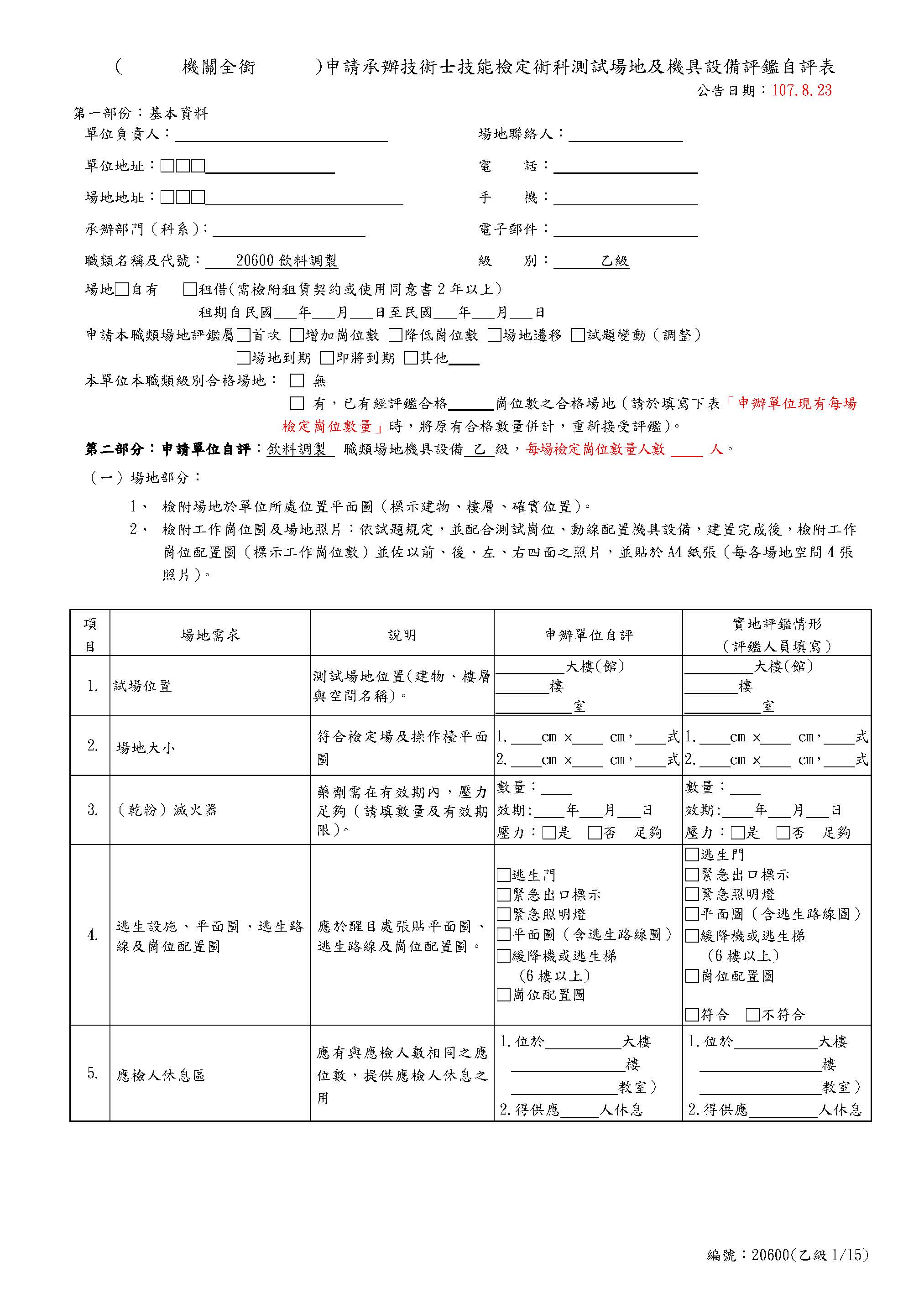 Self-Assessment Form for Beverages Class B