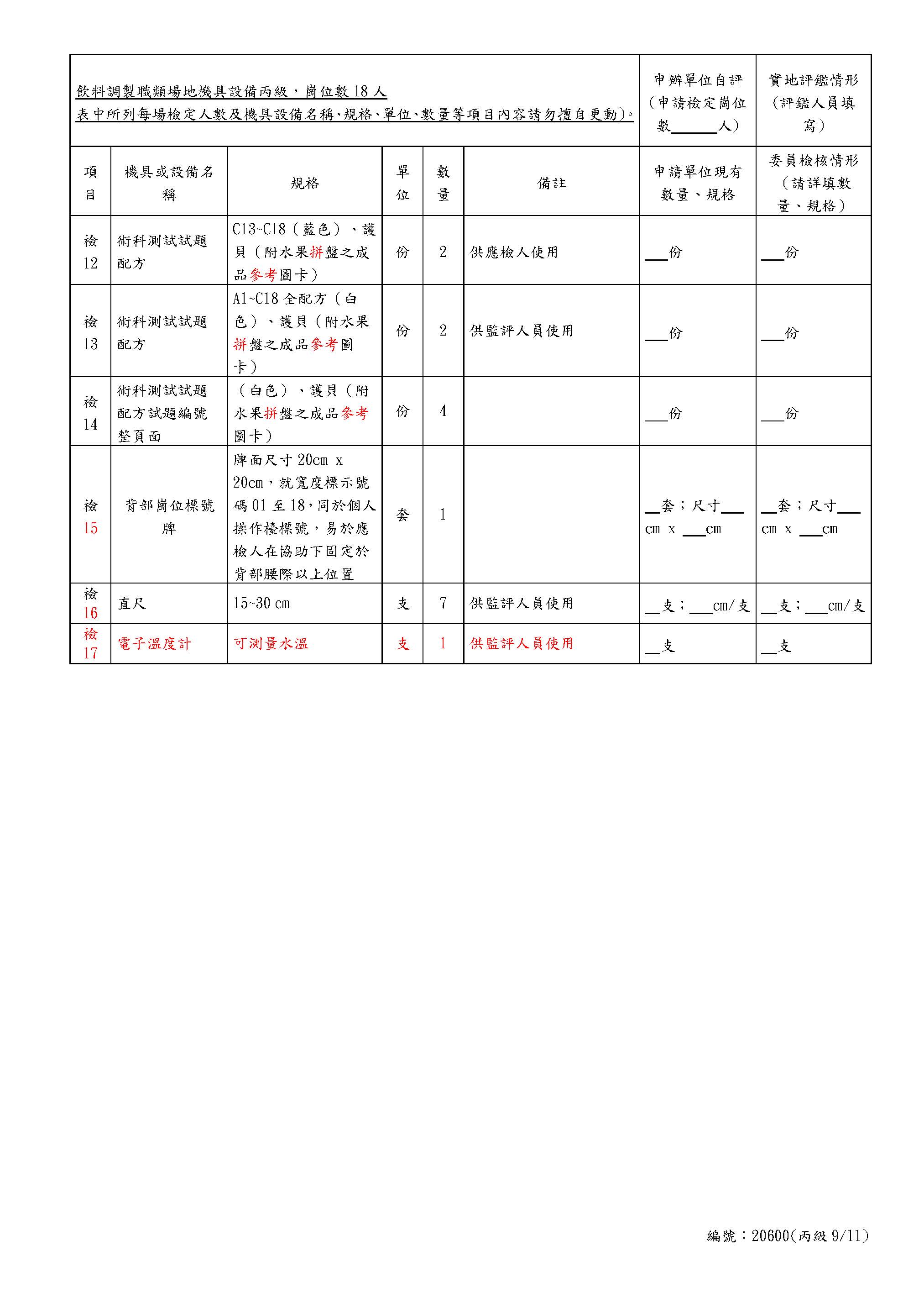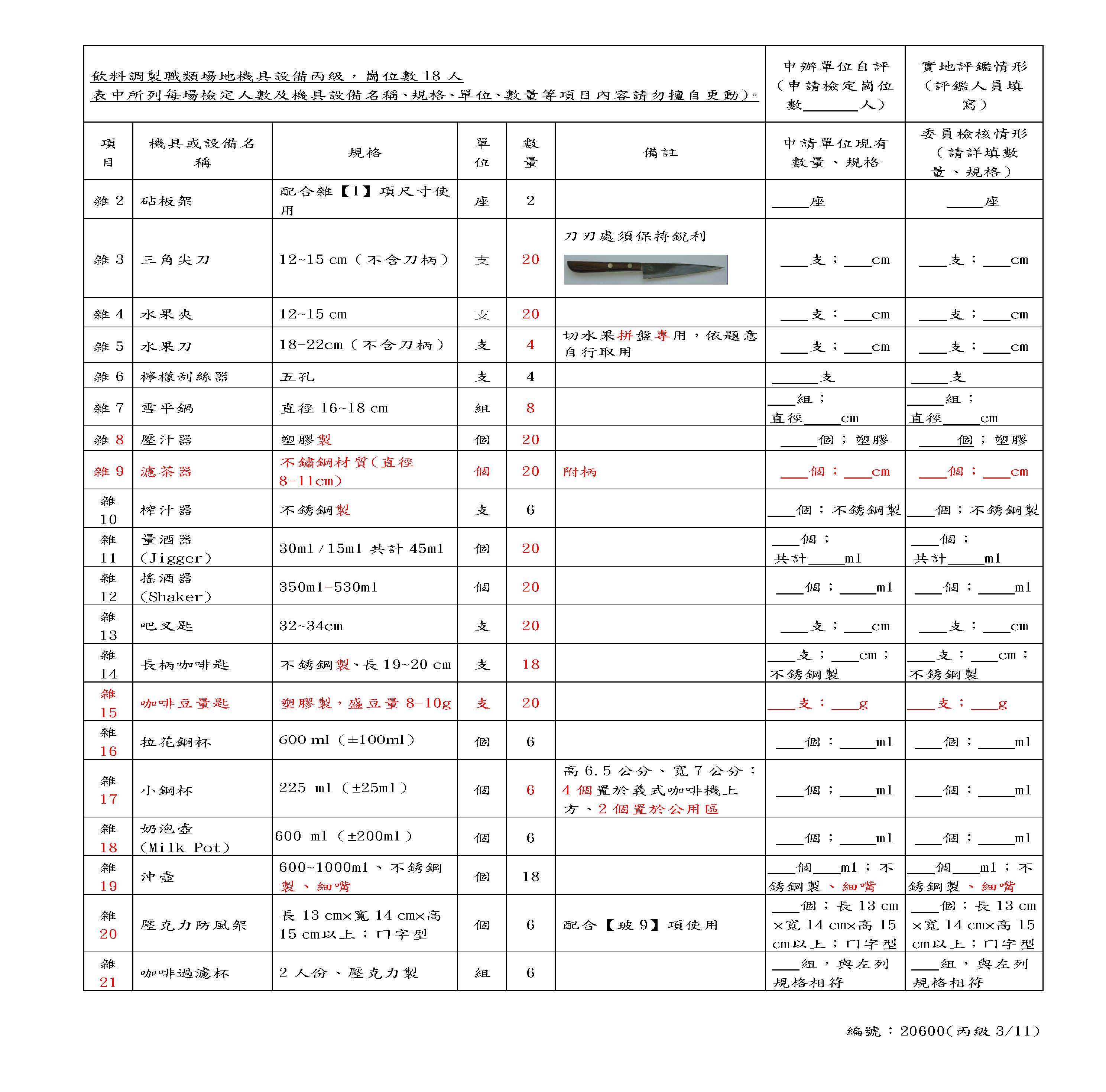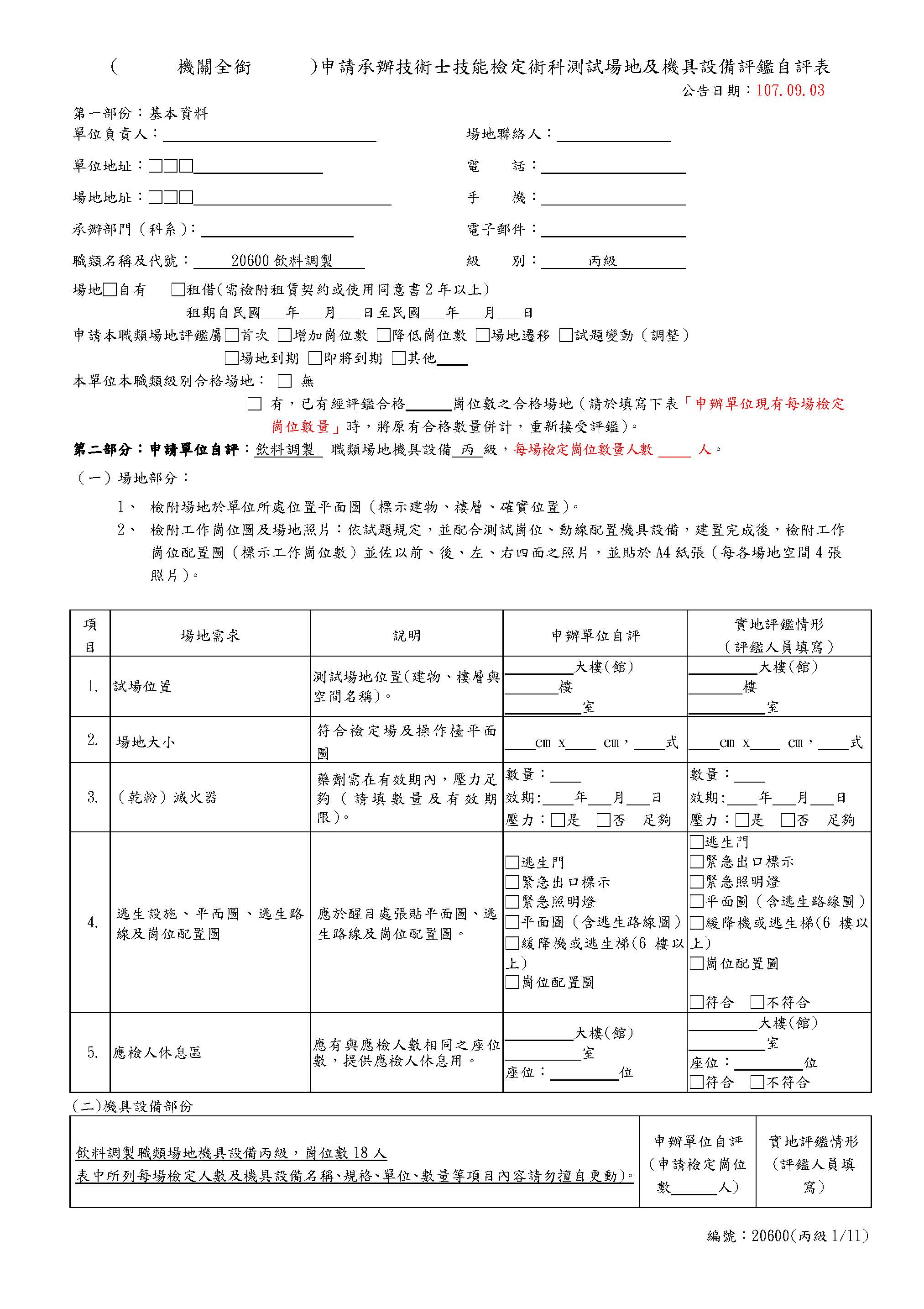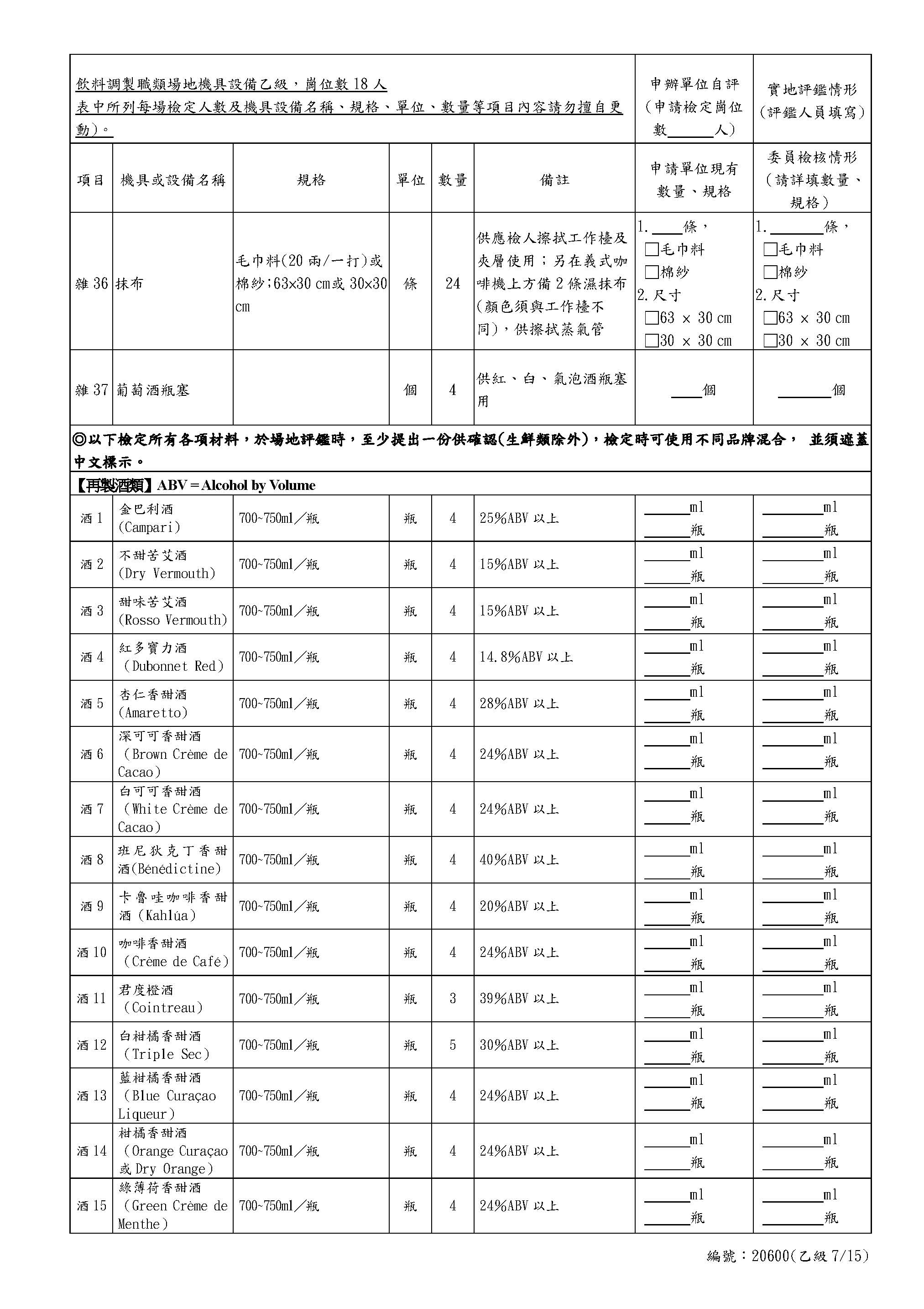 Self-Assessment Form for Beverages Class C